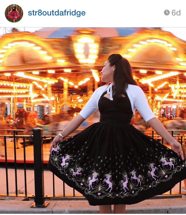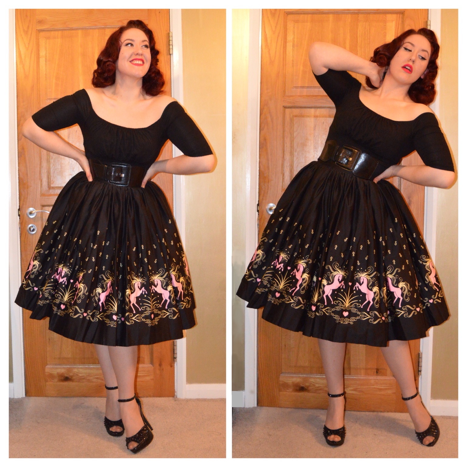 I personally saved my newest Jenny, the Dancing Horses print, for her first wearing during this week, as well as saving my Cinderella shoes that I had handmade (and blogged a tutorial for here) for their first outing, quite obviously saved to be worn with my Castle print Jenny. I look forward to wearing a new piece of clothing or pair of shoes for the first time, so it was lovely to be able to have those small doses of excitement scattered amongst the overall joy of the event. Pinup Girl Clothing featured me again encouraging women to get involved and to share stories of which Jennies grew on them over time, and meanwhile I dashed from profile to profile, overjoyed at the ladies taking part.