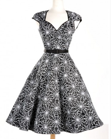 pugbeetle5 Published October 11, 2015 at 368 × 461 in Pinup Halloween: Beetlejuice Heidi dress in Spiderweb print by Pinup Girl Clothing $102