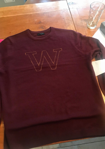 The areas where I pulled the stitches too tight or allowed them to get too loose meant I had to go back over them to repair the issue. I tried a couple times to do a very diagonal stitch in those areas to hold down any loose threads, but then that stitch looked too obvious and I had to place normal horizontal stitches over the top of it to mask it again. If you look closely at the bottom left part of the W in my pictures you can see where I messed that up, so take that as a warning to be more careful yourself. That’s why I think putting interfacing on the back wasn’t such an unnecessary optional step as I took it to be, and if I made another jumper I’d definitely add interfacing to help prevent tightness/looseness issues.