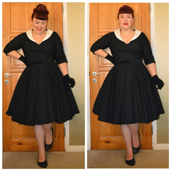 Old Eva Marie dress by Unique Vintage, Velvet belt off the Hell Bunny Blue Bell dress (discount code AMYMAY20!%) Crocs At Work flats, old Primark gloves, faux plaits created using Deep Wine braiding bundles from eBay, clip-in faux bangs self cut and coloured from eBay, Zooey petticoat by Malco Modes