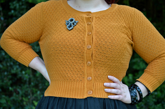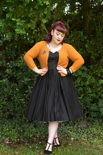 I am almost always wearing one of these cardigans when I dress vintage, not just because England is usually a bit chilly and because they’re the perfect waist-flattering length, but also because I just love that it allows me to layer in additional colour to my outfits, whether complimentary, monochrome, or even clashing.