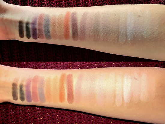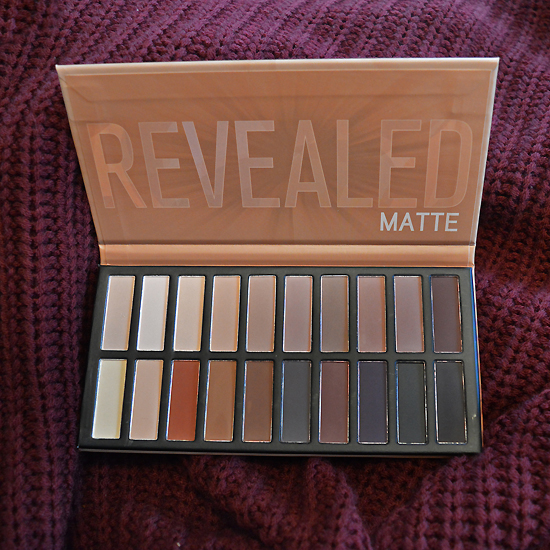 Swatches of all shades in the Revealed Matte palette in natural light and with a flash