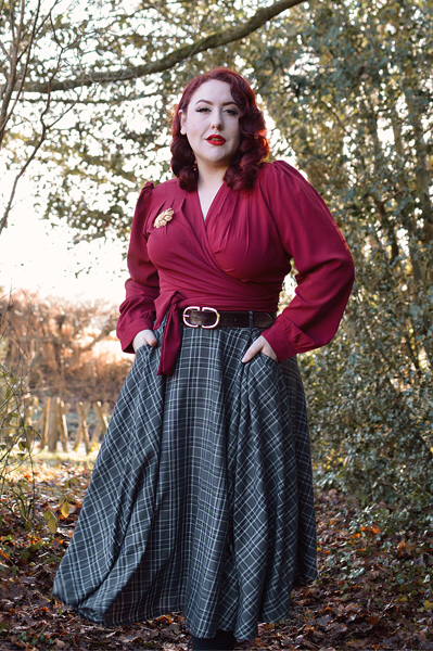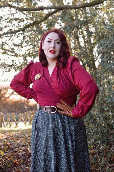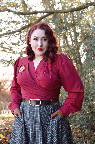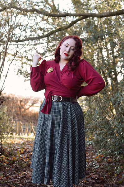 Rock’n’Romance are a family-run company that stock several excellent vintage-inspired clothing brands, but they also have their own clothing line, of which this Darla wrap blouse is a part. It’s a gorgeous vintage-inspired design, with gathers at the shoulder that create a touch of puff, and pleats in the bust that not only look elegant but offer an excellent level of wearability for fuller busts. There’s a lovely volume through the sleeves, which end in buttoned cuffs.