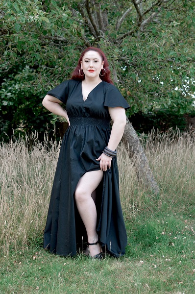 After making several stretchy or roomy pieces, I knew I would have to start making fitted or structured items so I could continue to improve my skills. I made this bolero in the same black cotton sateen I’d used for my maxi dress, opting to make the winged collar and cuffed version, as this pattern has several variations. This was my first time making a lined item, and it went okay. As in, it is wearable and I’ll get use out of it, but technically I did fuck up because at the point where I was supposed to be understitching the outer edge of the bolero by slipping the lining and outer onto the arm of my sewing machine separately through thr sleeve openings, I got distracted asking my mum if she could see in the pattern instructions where it told me how to finish the sleeves. (I still can’t see that?!) After we agreed together on a way I could do it, I ploughed ahead and began pinning the sleeve lining to the outer, then stitched them in place before realising…whoops, I didn’t understitch everything like I was supposed to before the sleeves were finished. I couldn’t be bothered to undo the sleeves and decided that if the bolero looked out of shape after washing then it wouldn’t bother me to stitch along the entire hemline 3mm from the edge in future just to secure everything, if need be. It’s not like the black stitching on black fabric will be super noticeable.