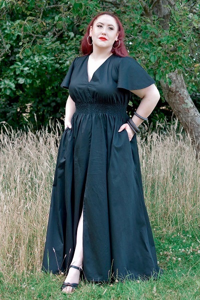 Pattern hacks: A bunch! I added pockets and flutter sleeves again just as I did with my first Popover, but I also lengthened it to maxi length, leaving a front slit, and extended the back for full coverage instead of leaving it as a V back.