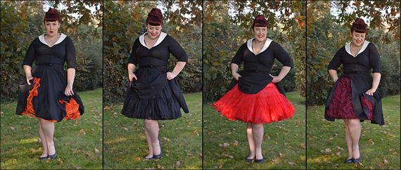 It’s one of my favourite times of the year. The nights are slowly beginning to draw in, making snuggling down on the sofa under a blanket one of the better ways to spend an evening, and making hot chocolate seasonally relevant again. Coats and scarves are unpacked from their summer hiding spots at the back of wardrobes or from suitcases in attics. And, my favourite of all, the leaves are changing colours, painting the world with rich reds, burnt oranges, flashes of yellow-gold, an occasional special plum. Along with it rain dampens the barks of trees to a dark brown, and excited Halloween lovers begin to string up all their red, black and ghostly decorations. And along side it all, Malco Modes’s wide selection of fluffy petticoats in all manner of styles and colours allows me to mimic those fall shades with matching autumnal tones.